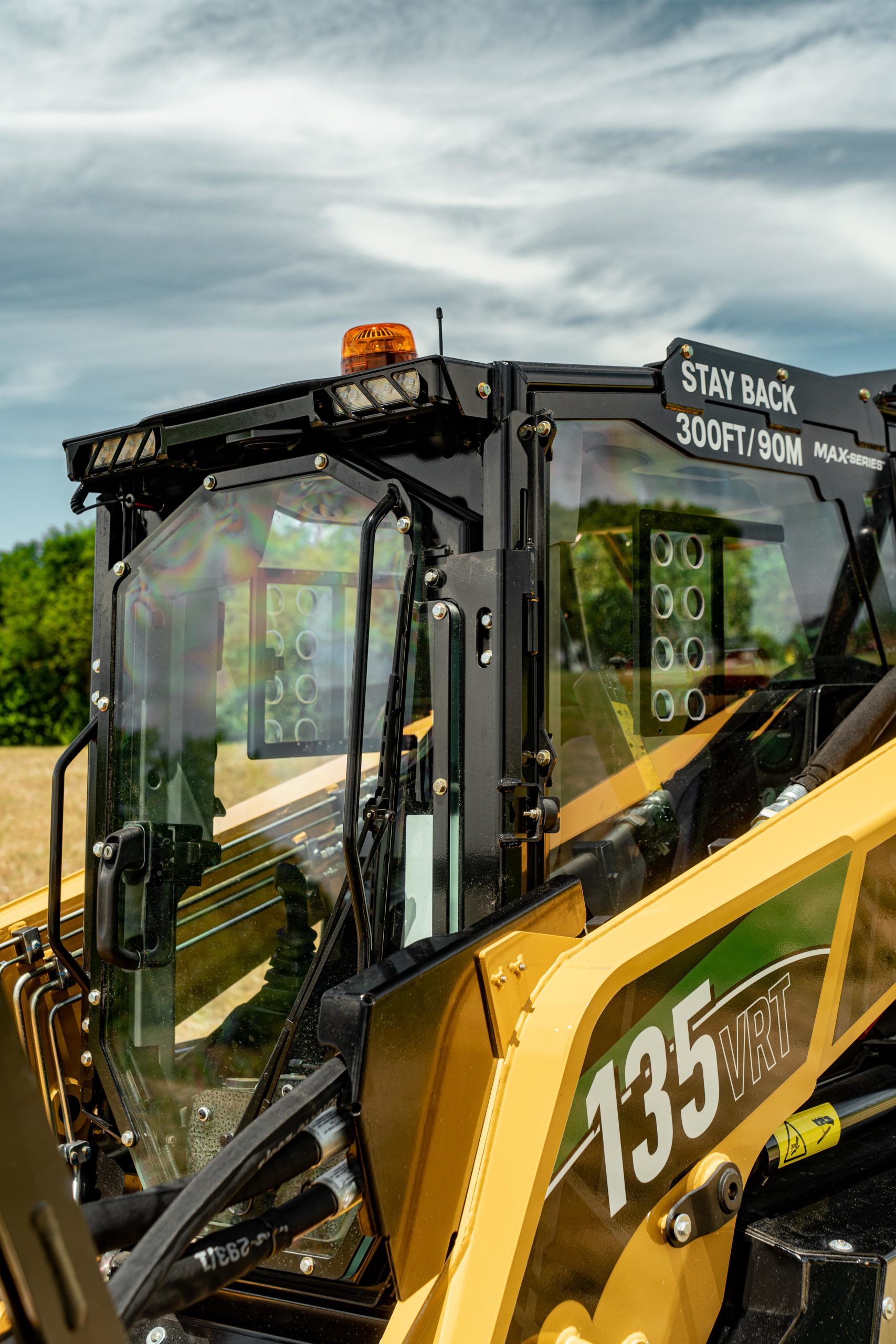 - Great visibility with all clear windows and doors and improved loader arm with no cross bars allowing for more visibility to the attachment